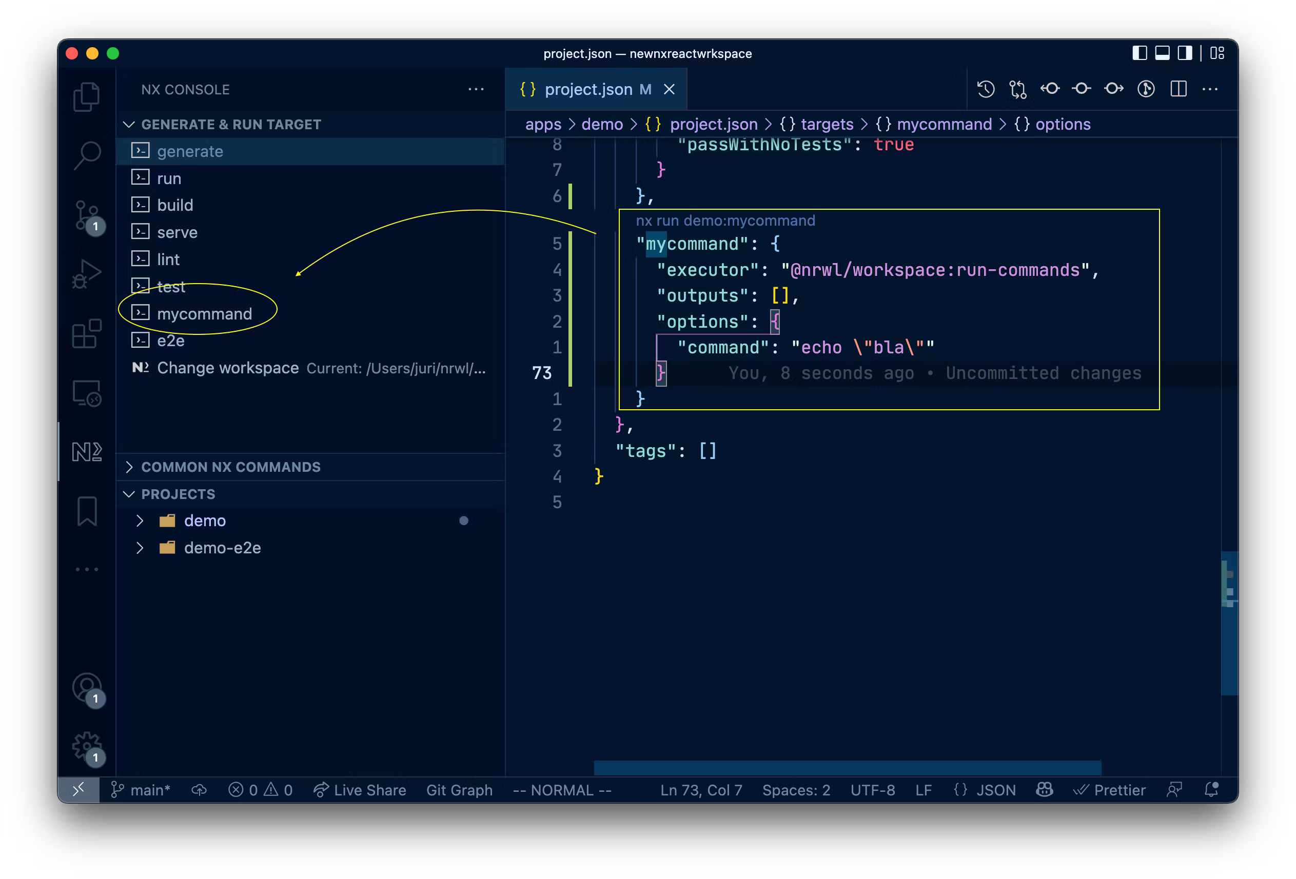 Nx Targets of VSCode Command Menu